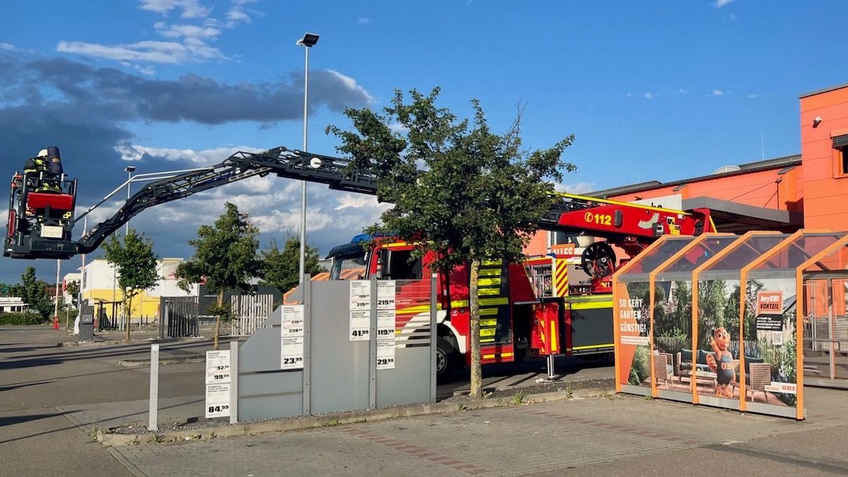 Übung in Baumarkt: Feuer beim Holzzuschnitt erforderte Menschenrettung unter Atemschutz