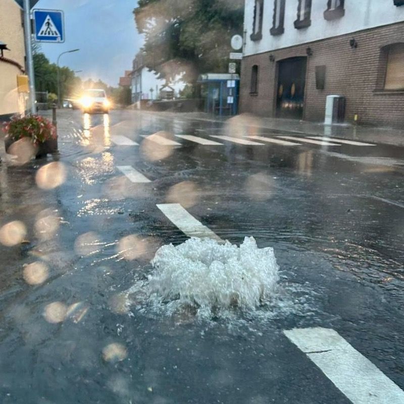 - Die Wetterstation der Rüdesheimer Feuerwehr registrierte innerhalb weniger Minuten rund zehn Liter Regen – zu viel für den ein oder anderen Oberflächenwassereinlauf in der Nahestraße: Aus mehreren Gullydeckeln sprudelte das Wasser, Abschnitte der Straße zwischen dem Weinhotel Bäder und der Rosengartenhalle sowie am Kreisel an der neuen Sparkasse waren zeitweise knapp 40 Zentimeter hoch überflutet. Um Schäden an Gebäuden zu verhindern, zog die Feuerwehr die Sinkkästen und leerte diese, sodass das Wasser abfließen konnte.