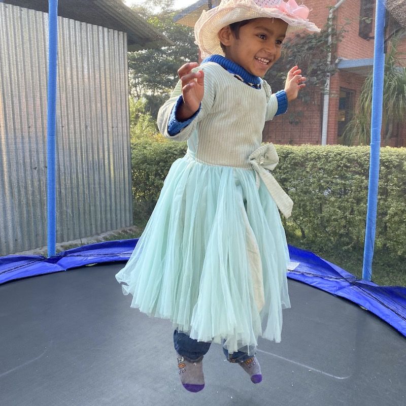 Sujal hatte total verkohlt in der Ecke eines Tage zuvor abgebrannten Hauses gelegen. Im INTERPLAST-Hospital wurde sein kleiner Körper durch Liebe, Expertentum und Hingabe gerettet. Nun war noch die plastische Korrektur von Narben am Hals und an der Hand angezeigt. Wie „nach Hause kommen“ war es für ihn, als er um die Ecke die vielen spielenden Kinder im Krankenhausgarten erblickte und gleich mitspielen wollte.