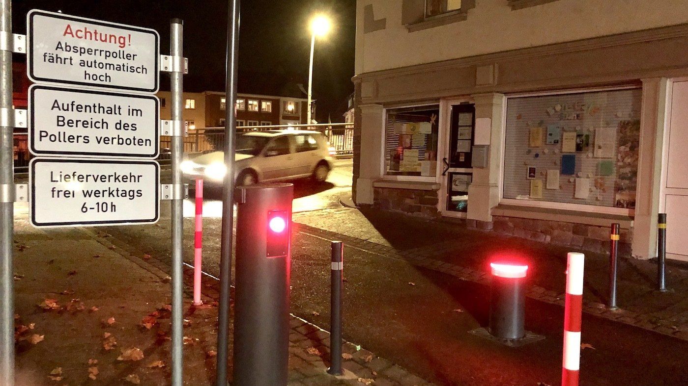 Der Sperrpoller in der Kurhausstraße, der nachts nur Anliegern die Zufahrt gewährt, arbeitet derzeit nicht.