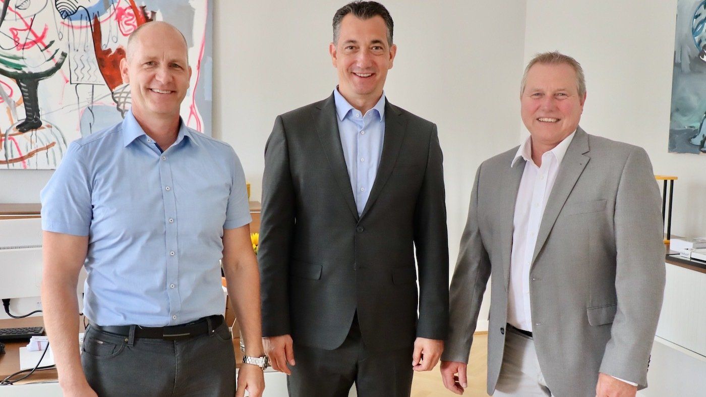 Foto: OB Emanuel Letz begrüßte Fouad Yahia (links) und Michael Seibel (rechts) im Stadthaus.