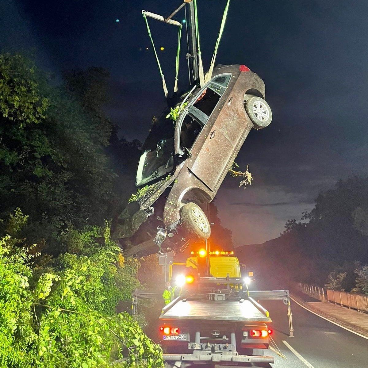 Der Vorfall ereignete sich gegen 18:35 Uhr auf der Fahrbahn Richtung Koblenz. Nach dem Sturz von dem Lkw verharrte die Kabeltrommel mitten auf der Fahrspur, sodass ein 19-jähriger Autofahrer nicht ausweichen konnte und mit seinem Wagen gegen das Hindernis fuhr. Bei dem Aufprall entstand mutmaßlich ein Totalschaden in Höhe von ca. 15.000 Euro. Die Seitenplatte der Trommel hatte sich weit in die Front des Pkw gedrückt.